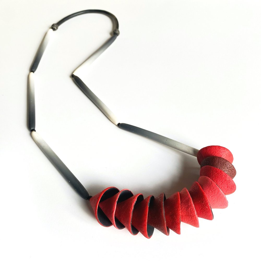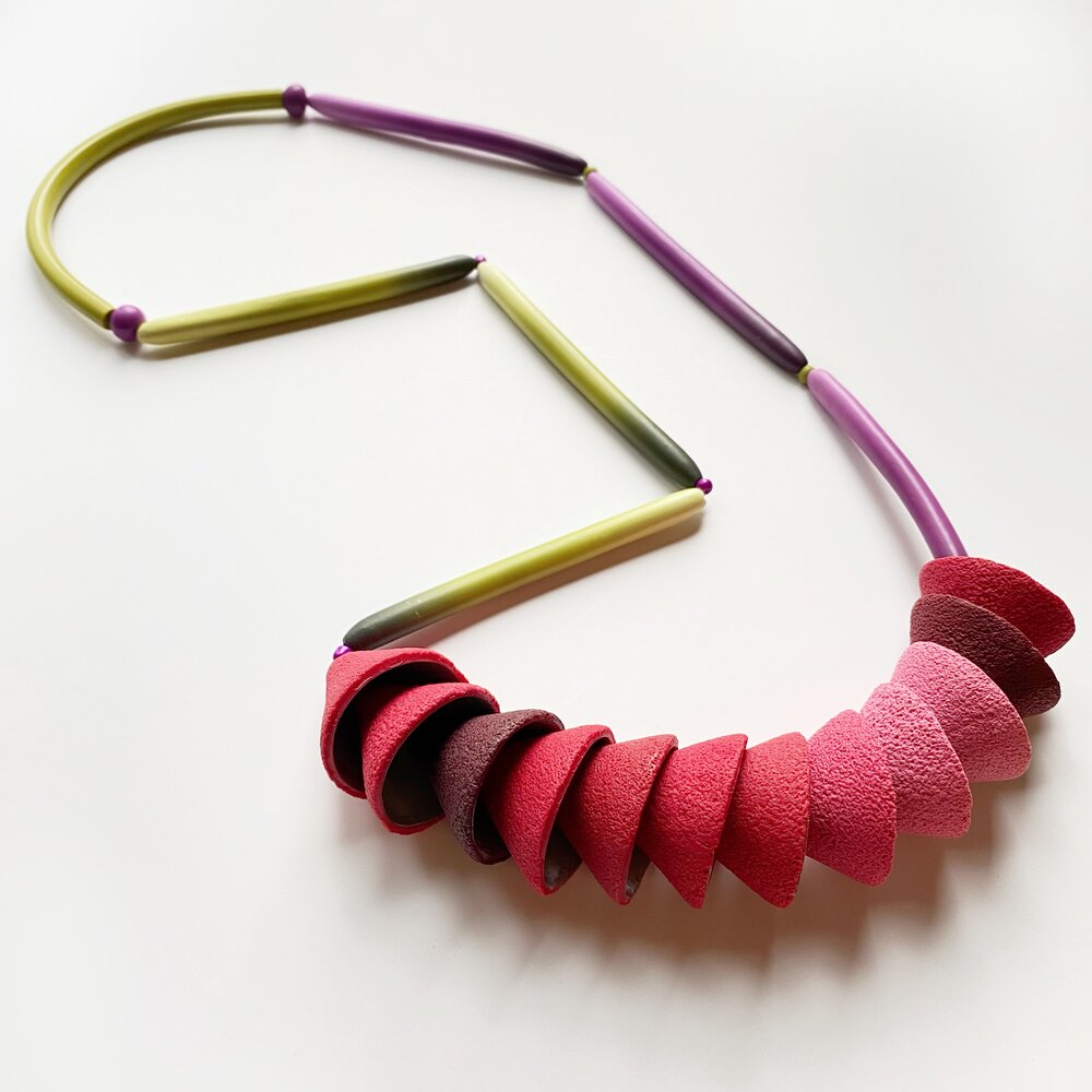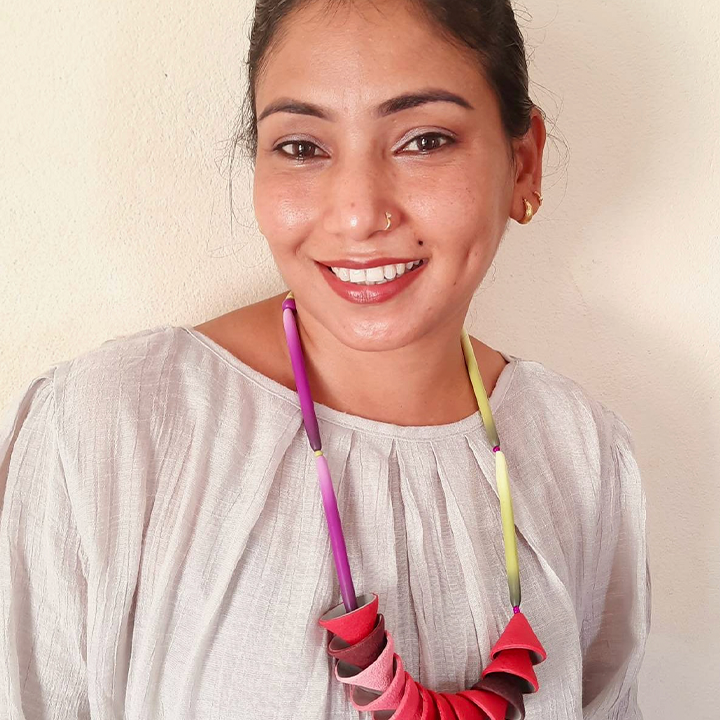 In 2020 the respectable artist and teacher, Kathleen Dustin dedicated her time and artistry to help support the women of Samunnat by developing zoom classes and designs for their income generation program. The sale of their collaboration necklaces launch in OCTOBER 2021 on the Samunnat website.